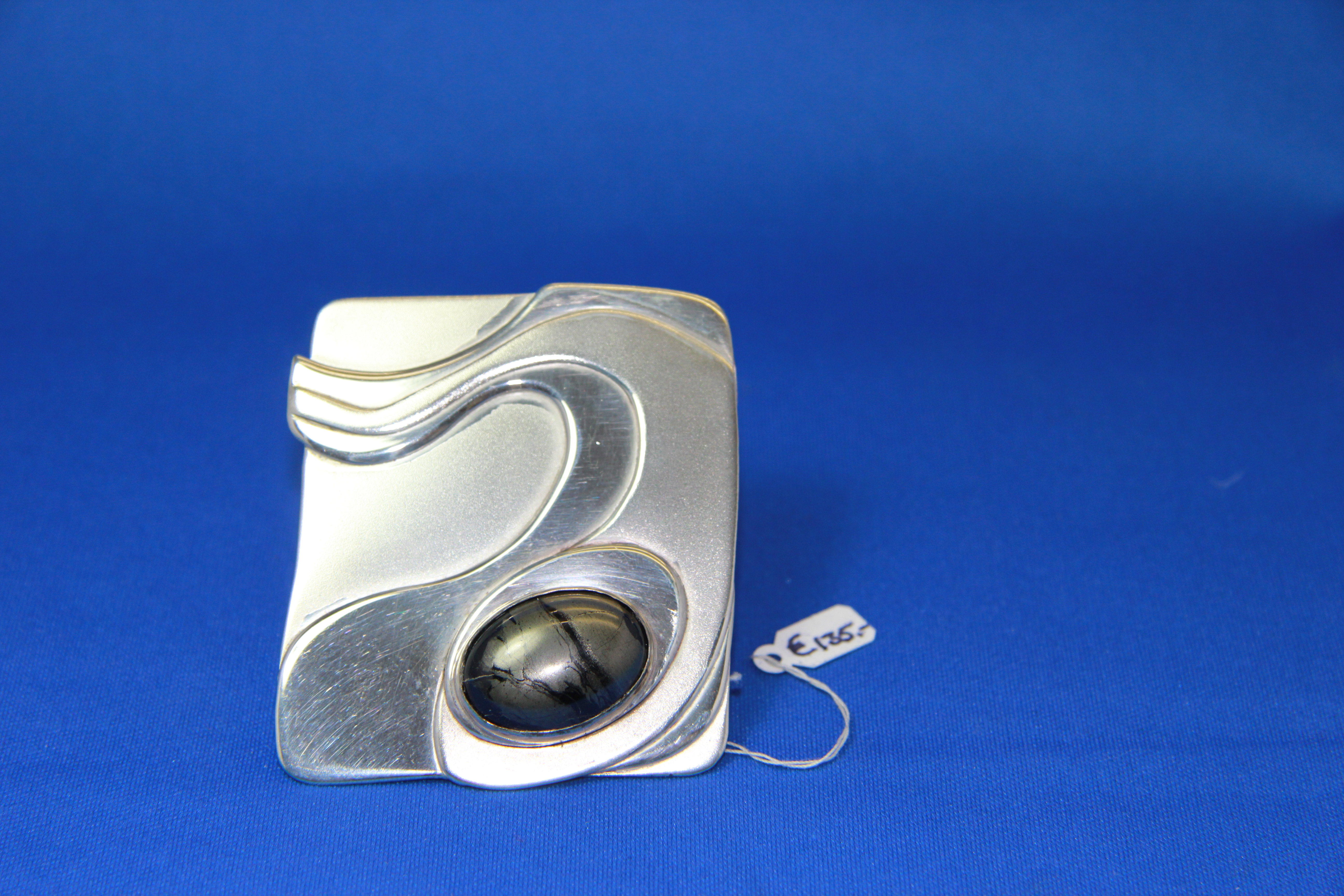 Broche met hematiet geslepen cabochon Hematiey, bloedsteen. eerste gehalte zilver