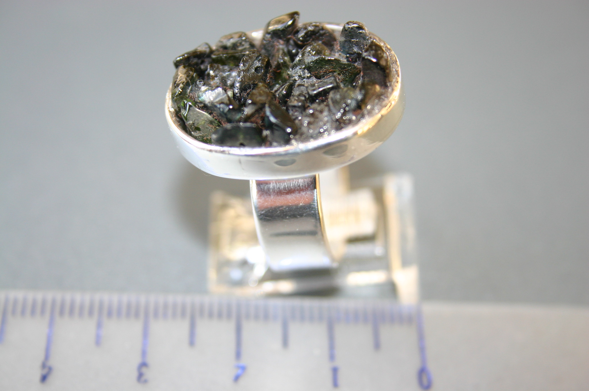 Ring van zilver met ronde halve coup gevuld met rookkwarts